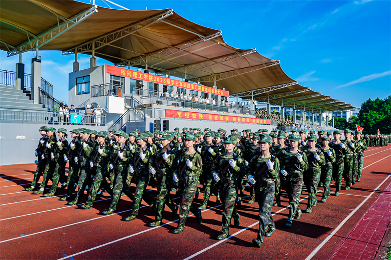 9月12日,绍兴理工学院2025级学生军训成果汇报暨总结表彰大会在学校北区田径场举行。柯桥区人武部上校政委卢江、校军训工作领导小组组长梁瑜、副组长李黎等成员及全体新生、承训教官、连队指导员出席,汇报会由校军训工作领导小组副组长、军训团政委石旭明主持。