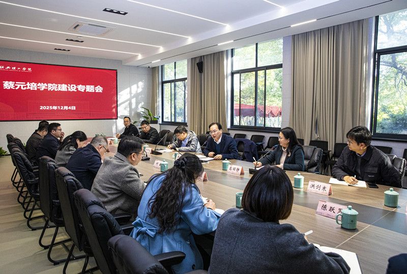 在随后召开的专题工作会议上,校长张宏详细阐述了蔡元培学院办学定位与发展方向,并提出三点要求。他强调,蔡元培学院要勇担教育改革“试验田”使命,以高等教育与人才成长规律为指引,课程体系、教学模式、评价机制等方面创新突破;学校各职能部门、二级学院要树立“一盘棋”思想,畅通资源配置渠道,构建协同联动、高效赋能的保障体系;学院教师要厚植教育家精神,潜心育人、追求卓越,在传授知识的同时启迪智慧、塑造灵魂。张宏表示,全校上下要悉心呵护、合力托举,全力把蔡元培学院打造成学校人才培养的示范窗口与标志性品牌,为绍兴经济社会高质量发展培育更多高素质拔尖创新人才。