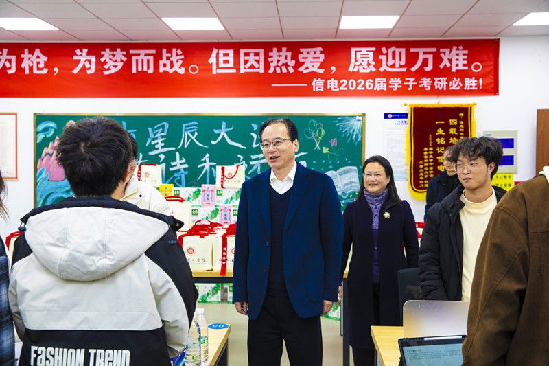 在走访中,校领导与同学们亲切交流,细致询问备考进度、复习状态与生活需求,耐心倾听大家在冲刺阶段面临的压力与困惑。“考研是一场持久战,既要筑牢知识根基,更要保持昂扬斗志。”校领导的话语质朴而有力,殷切叮嘱同学们在最后关键期要合理规划作息、注重劳逸结合,遇有压力及时与师长同窗沟通交流,以饱满精神与从容心态应战,充分发挥真实水平。校领导表示,学校将持续聚焦考研学子核心需求,不断优化服务,全力为同学们营造良好的备考环境,助力青年学子圆深造之梦。