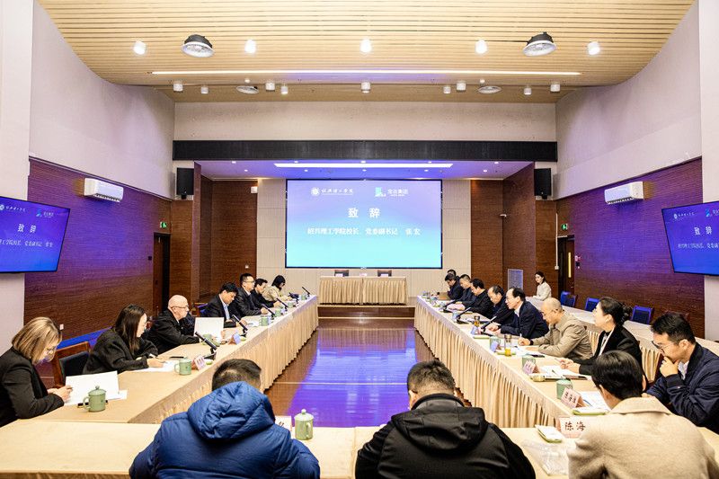 12月16日上午,绍兴理工学院与宝业集团股份有限公司校企合作座谈会战略协议签订仪式顺利举行。校党委书记高建国、校长张宏、副校长王华锋,宝业集团总经理庞巍祥、副总经理孙利军等出席仪式,仪式由校党委副书记梁瑜主持。双方聚焦产教协同育人、师资队伍建设、科技创新合作等核心议题达成深度共识,携手开启优势互补、共谋发展的合作新篇章。