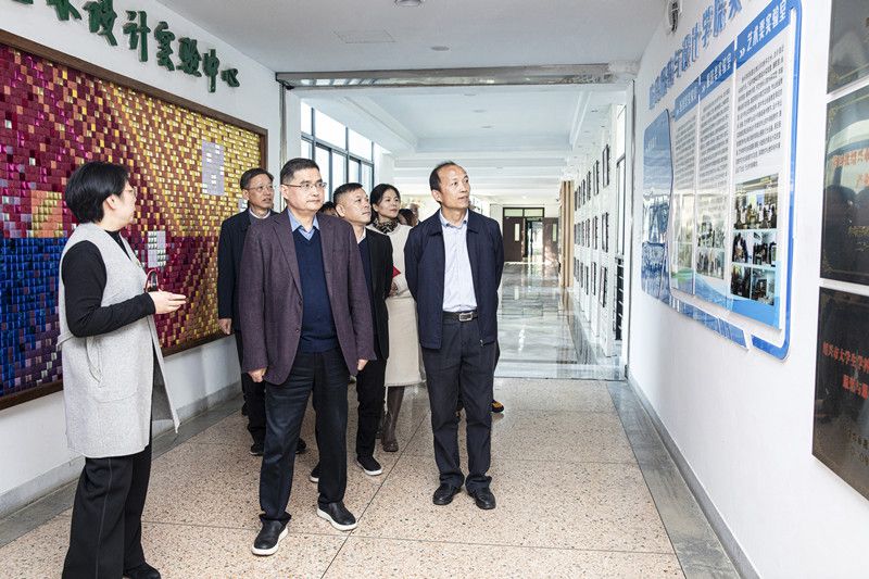 座谈会前,与会领导、嘉宾一行实地走访参观了纺织服装与设计学院实验室。
