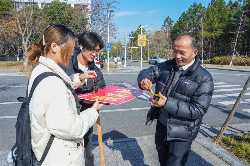 活动沿着精心设计的路线展开,沿途设置“健康、快乐、平安、幸福”等寓意美好的站点。大家一路经过图书馆、国际文化交流中心等校园标志性建筑,冬景如画,欢声笑语交织,构成一幅生机盎然、充满希望的校园画卷。
