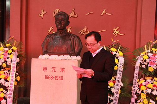 梁瑜向蔡元培先生铜像敬献花篮(左二)