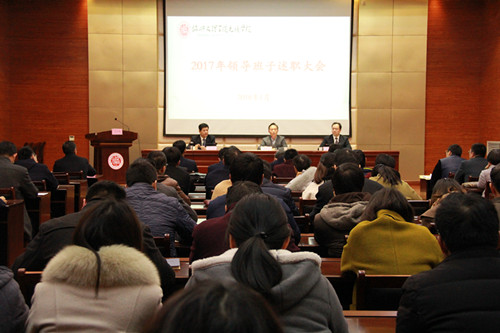 1月16日下午,学院2017年度领导班子考核述职会在图书馆828会议中心召开。校党委副书记唐和祥到会指导,院领导梁瑜、叶访春分别对一年来的工作进行述职。院党政班子成员、全体管理干部、“双代会”代表参加会议。会议由唐和祥主持。