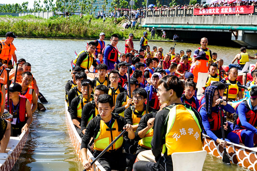 扬帆起航,劈波斩浪,6月13日至15日,浙江省大湾区龙舟邀请赛暨慈溪滨海经济开发区(龙山镇)第四届徐福文化艺术节开幕式在浙江省慈溪市龙山镇举行。我院龙舟队14名成员在领队余丁友和教练员丁海洋带领下首次出征,在比赛中跃浪争先、奋力拼搏,分别获得200米、500米直道赛第十名与总成绩第十的良好成绩。其中,在200米、500米直道赛排位赛中均获小组第一,500米直道赛成绩甚至比第一天小组赛成绩提高了6秒。