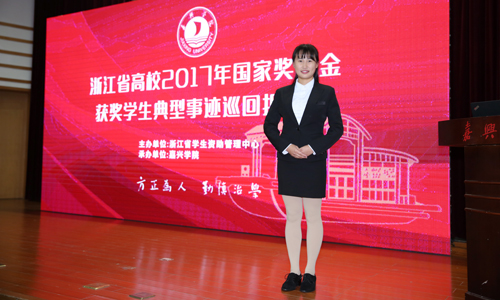 王嘉玲,女,中共党员,国贸1402班学生,性格活泼开朗,勤奋好学、严于律己,荣获国家奖学金、浙江省政府奖学金、特等奖学金;优秀团员、优秀学生干部、百佳寝室长、暑假实践先进个人、优秀毕业生等多项荣誉称号。现任中信银行绍兴分行营业部市场经理,出色的工作表现获得同事与领导的一致好评。
