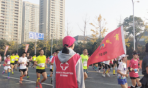 我院200名志愿者队伍分别由来自医药与健康分院、经济管理分院、语言文学分院、建筑工程分院、信息与机电工程分院、纺织服装与艺术设计分院等6个分院的优秀学生组成,其工作区域分布在解放大道、二环北路、迪荡湖路、胜利东路、中兴路、鲁迅故里、府山横街和环城西路等路段,协助医护人员负责赛道医疗观察,确保每一位参赛运动员的生命安全,并当好啦啦队和其他保障任务。