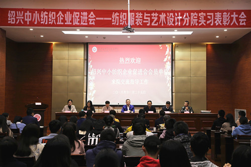 11月25日上午,绍兴中小纺织企业促进会暨纺织服装与艺术设计分院实习表彰大会在图书馆828会议中心举行。学院党委副书记宣海江,绍兴中小纺织企业促进会会长、绍兴三川纺织品有限公司总经理江一玮,促进会执行秘书长王利生以及企业嘉宾代表等出席活动。促进会会员企业负责人、纺织服装与艺术设计分院相关负责人、博士代表、专业负责人以及师生代表等参加活动。会议由分院党总支负责人主持。