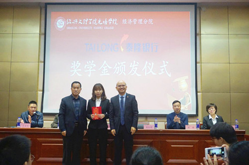 表彰大会上,冯根尧和周跃军共同为“行长特别奖”获得者何佳青颁奖,奖金4000元。分院相关负责人、彭丹分别为其他奖学金获得者颁奖。其中两位同学获得一等奖学金,奖金每人3000元;五位同学获得二等奖学金,奖金每人2000元;十位同学获得三等奖学金,奖金每人1000元。乐滔滔等22名优秀学员与泰隆银行相关负责人签订了劳动就业协议。