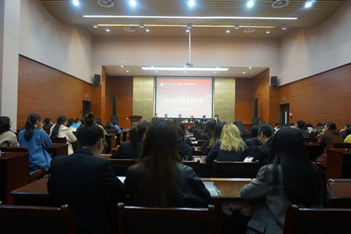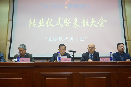 周跃军代表泰隆银行绍兴分行对我院毕业生顺利入职表示祝贺与欢迎。他表示,泰隆银行绍兴分行将以首届“泰隆英才班”圆满结业为新的起点,尽职尽责,为即将加入“泰隆”大家庭的同学们提供职业生涯规划,同时将以更加开放的姿态,海纳百川迎接各方学子。