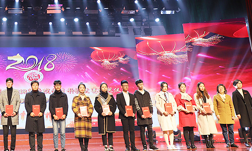 12月26日晚,2018年师生颁奖典礼暨迎新晚会在国际文化中心隆重举行。绍兴市教育局高教处处长赵佳维、绍兴市科技局高新技术发展及产业化处处长俞洁、绍兴市人社局人才开发服务中心主任沈淑杰、绍兴市越城区人社局人力资源服务中心主任李荣、绍兴市职业技能开发指导中心科长凌军、绍兴中小企业纺织促进会会长江一玮、慧科集团浙江区总经理、浙江区校长竺浪、绍兴慧谷科技孵化器有限公司总经理王一男、绍兴市大学生农创客发展联合会会长汤帅亮、绍兴立尚文化传播有限公司总经理劳立江、泰隆银行绍兴分行人力资源部总经理彭丹等嘉宾应邀出席,梁瑜、叶访春等学院党委领导班子全体成员,各分院院长、书记、相关职能部门负责人以及部分师生代表欢聚一堂,共同观看了晚会。