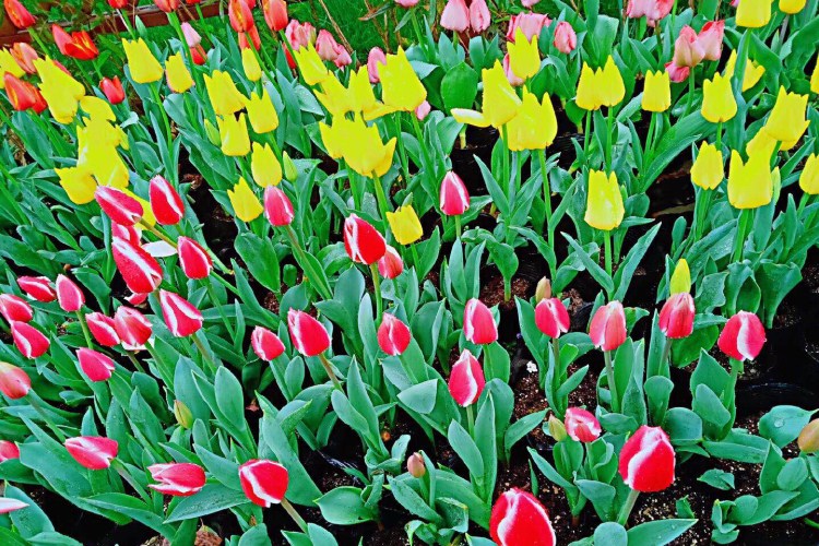 据悉,自去年11月份开始,我院建筑工程分院园林专业除15届以外的三个年级的全体师生就开始在园林温室大棚内栽培了四个品种、共计约9000多盆的郁金香,近三百人参与培育种植郁金香的实践活动,经过长达半年的培育种植,才有了如今这般的美景。