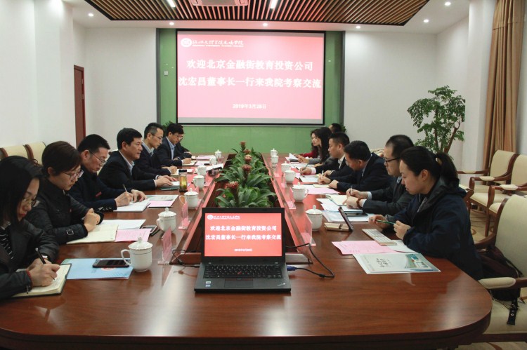 交流会上,叶访春代表学院对沈宏昌董事长一行来我院考察交流表示热烈的欢迎,并详细介绍了学院的历史沿革、发展现状、办学特色、远景目标等内容。沈宏昌董事长对我院近年来取得的成绩表示赞赏,同时也向我院详细介绍了北京金融街投资集团的相关情况。交流会上,双方就如何开展交流合作、国际化办学等内容进行了深入的探讨和交流。沈宏昌一行还参观了学院创新创业学院、红色学府、纺织服装与艺术设计分院。