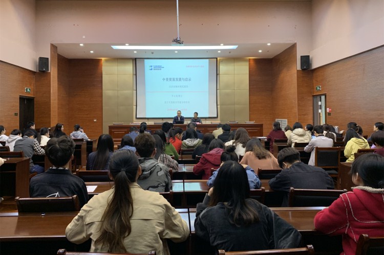 李文龙博士通过中美货物贸易长期变动趋势和近期变动趋势分析了中美贸易的发展动态,从多维视角衡量了中美贸易,并从消费、投资及对外等三个方面提出对研究与实践积极的启示。整个报告采用了大量数据和图表进行解读,言简意赅、通俗易懂,给在座的师生带来了一场生动精彩的讲座。