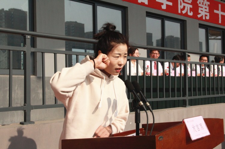 运动员代表语言文学分院翻译1602班唐露芬同学上台宣誓