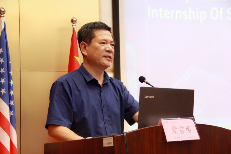 叶访春对各位师生即将赴海外学习交流表示祝贺,并为交流团授旗。叶访春指出,本次活动是学院近年来涉及师生人数最多、覆盖国家(地区)最广的赴国(境)外学习交流活动。全院师生要共同努力打造有意义、有品质的学习之旅、体验之旅、成长之旅和收获之旅。围绕“三个面对”,叶访春对交流团师生提出三点要求和希望:一是面对挑战要学会微笑。要明确出国目的和目标,深入学习、体验,敢于迎接挑战,在行“万里路”中继续求知;二是面对事件要学会淡定。要多渠道接收信息,多视角辩证思考,提高风险认知和防控能力,充分展现当代中国大学生健康、积极、阳光的形象;三是面对团队管理要学会服从和尊重。要充分认识此次活动的意义和重要性,进一步总结经验,为学院今后国际交流活动奠定基础。