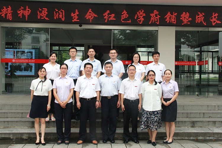 与会人员在红色学府前合影留念