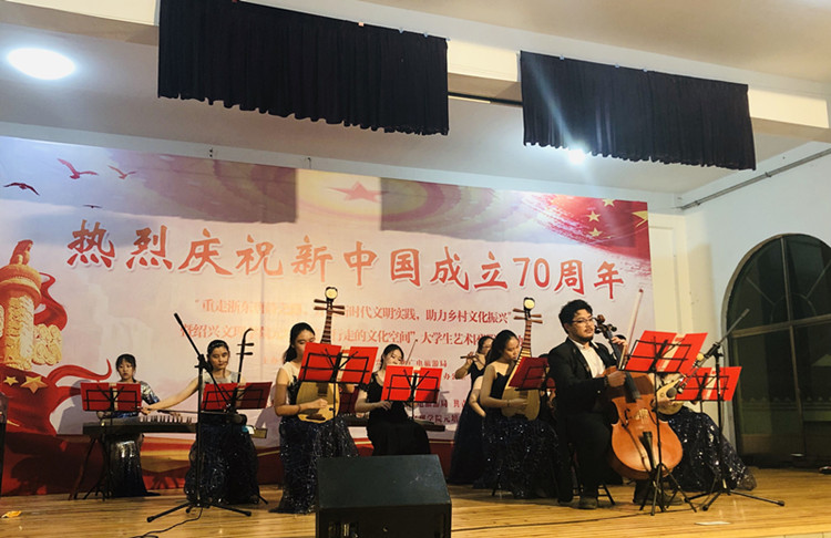 中原崛起,中华复兴,通过此次暑期社会实践的巡演活动,学院大学生艺术团的青年团员学生们不忘使命,牢记使命,用自己的青春和激情,勇担振兴乡村文化的责任。我们将继续相约在年轻的时代潮头,共同点燃历久弥新的信心灯塔。任风雨洗吹,时光荏苒,从江南杨柳岸走来,一路追寻浙东唐诗之路上的足迹,传承诗路文化,助力乡村振兴,为新中国成立70周年喝彩,为神州华夏祝福。