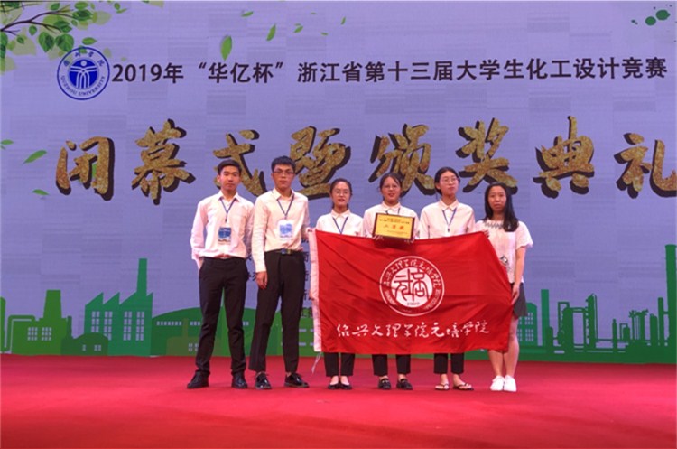 7月30日-31日, 2019年“华亿杯”浙江省第十三届大学生化工设计竞赛在衢州学院举行。由我院药学专业1704班林欣雨、1702班林波霞、1804班沈露、1801班刘钊博与工程管理专业1701班周雷人组成的“Hots”团队经过激烈比拼,荣获浙江省团体二等奖。