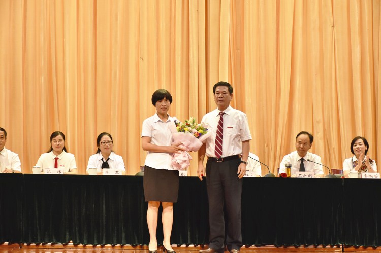 叶访春为省师德标兵、省级优秀共产党员周瑾献花