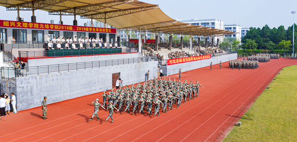 夏意犹存、秋色渐近,经过十天的顽强拼搏和刻苦训练,学院2018、2019级学生军训团在浙江陆军预备役师官兵的严格训导和全体同学的共同努力下,圆满完成预定各项任务。9月12日上午,2018、2019级学生军训闭营式在北区田径场举行。军训团政委、浙江省陆军预备役步兵师后勤部运油科科长杨建富中校,学院党委书记叶访春、院长沈红卫,绍兴文理学院学生工作部、人武部副部长郑德祥与学院党政班子成员出席闭营式。学生军训领导小组成员、各分院书记(副书记)、2018、2019级学生军训全体学员、教官、指导员参加闭营式。闭营式由学院党委副书记石旭明主持。