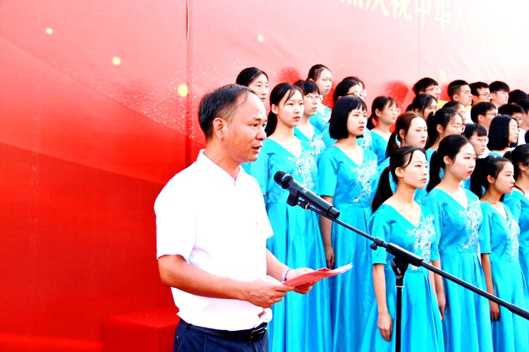 7时30分,郝敬习宣布仪式正式开始,伴随着《歌唱祖国》悠扬的旋律,国旗护卫队以整齐划一、铿锵有力的步伐正步而出,依次穿过由全院及建行党员、预备党员、学生代表组成的“70”字样方阵,气势恢宏地走到升旗台前,庄严的升国旗仪式正式拉开帷幕。我院合唱团领唱《义勇军进行曲》,五星红旗迎风飘扬,舒展在蔚蓝的天空,随着雄壮的国歌声冉冉升起。在场的全体师生员工身着统一正装,整齐列队、齐声高歌,挥舞着手中的国旗,用饱满的热情,昂扬的斗志表达了对伟大祖国的衷心爱戴和真诚歌颂。