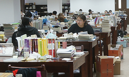 吴洋只是我院众多考研学子的一个缩影,每一个考研族“夜以继日”,“路漫漫其修远兮,吾将上下而求索”正是对他们最好的诠释。“背起那沉重鼓来的书包,每天重复着纯粹的三点一线的生活,我清楚的知道前面路途那一幅幅考研的喜报是我为之奋斗和努力的目标与方向……”国贸专业备考学生周朝宗告诉记者:“坚持本身就是一个无比闪亮的意义。”