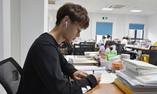每天早上5点起床,次日凌晨入眠;早上背单词看政治,下午练真题做评析,一天时间,十多个小时用在复习备考上,这是国贸1602班吴洋同学在备战考研两百多天以来的学习生活状态,也是学院2019年282位考研人的真实写照。