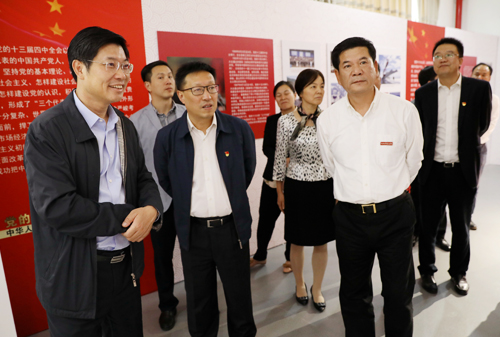 调研中,干武东一行先后参观了学院创新创业学院和红色学府。每到一处,干武东都详细了解大学生创新教育与创业实践情况、红色学府的建设理念与日常运行情况,并为学院的创新举措点赞。在听取了有关学院创新创业学院和红色学府建设情况的汇报后,干武东对我院创新创业教育及党建与思想政治工作取得的成效给予了充分肯定。他指出,学院创新创业教育成效明显,党建与思想政治工作理念新、举措实、内容丰富、感染力强、富有特色。他强调,高校创建党建文化品牌大有可为,学院在巩固原有基础上,要进一步充分利用地方红色文化资源,结合学院实际,优化提升学院红色学府建设工作,让广大师生浸润在党建文化中,努力打造特色党建品牌,切实发挥党建引领作用,着力提高大学生思想政治工作水平和工作成效。