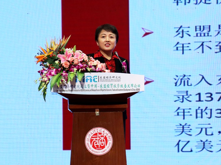 中国—东盟中心汪红柳主任致辞,对东盟经济研究院的成立表示衷心祝贺,详细阐释了中国与东盟全面深入的关系。她指出,东盟经济研究院作为由一个优秀大学和杰出科技企业共同创立的机构,令人瞩目和期待。希望研究院加倍努力,成为集研究、学习和探讨为一体的平台,充分发挥地区作用,交流互鉴、扩大共识,同时与东盟和中国各界人士开展合作,为加深中国—东盟友谊与合作做出新的贡献。