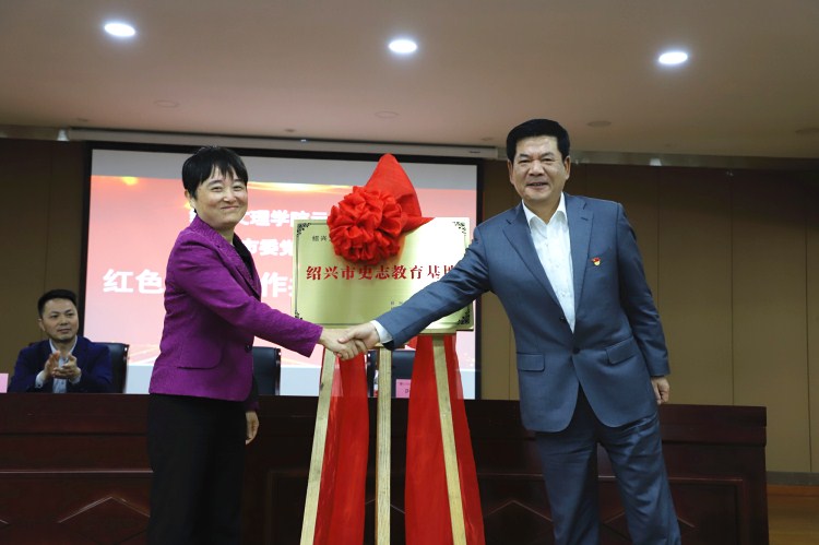 叶访春与赵玲华共同为“绍兴市史志教育基地”揭牌
