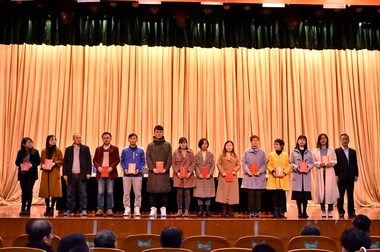大会表彰了2018-2019学年教学优秀奖和学院首届外聘教师教学优秀奖教师,周思红宣读获奖名单,叶访春、沈红卫分别为学院首届外聘教师教学优秀奖获得者、学院教学优秀奖获得者颁发荣誉证书。