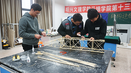 “于周平老师从院赛的选拔就开始对我们进行指导,暑假还留校陪我们训练,张聪燕和顾晓林老师也时常来看我们,非常及时的帮我们解决了问题。”刘贤笑着说,“还有我们的学长给我们很多帮助,他也非常优秀,是我们学习的榜样。”作为现任“结构建模协会”的会长,刘贤三人深深记得并感谢曾指导或帮助过他们的人。对于学弟学妹们,刘贤也提出了一些建议:“首先要对结构建模建立起一定的热爱,如果对竞赛感兴趣的,应该多完善自己的理论知识,加强手工的技巧,要充分开发自己的设计思维。”他说,参加这类竞赛不仅能见识到更多学校赛队的水平,开拓眼界,也是对课堂理论知识的实践,对学业有很大帮助。同时,在准备和参赛的过程中,培养了自己的耐心和毅力,心理素质也得到了很大提高。