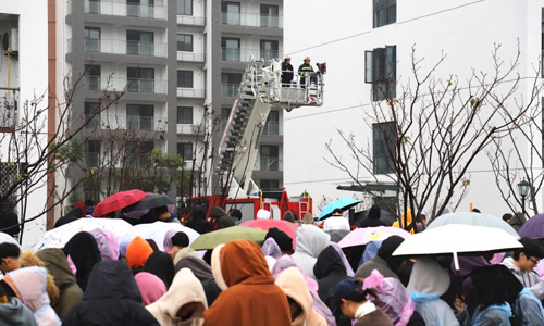 11月27日,在北区学生公寓12、13幢开展了消防应急疏散演练,各分院书记(副书记)、学生辅导员、消防救援官兵、辖区民警、义务消防员及学生代表等800余人参加应急演练。随着学生公寓弥漫的烟雾,消防疏散信号的拉响,公寓楼内各楼层在疏散引导小组人员的指挥与引导下,用湿毛巾捂住口鼻,弯腰、快速从楼梯有序向楼下撤离。随后学院微型消防站消防员、警务室救援队、医务室120急救车、消防救援车根据预定时间陆续到达救援现场,迅速进入公寓对火灾与人员进行救援、疏散。现场还对伤员担架救援、登高云梯救援等项目进行实战演练,最终全部学生均顺利撤离至安全区域。整个应急演练活动安全有序、规范高效,现场没有发生一例奔跑跌倒、拥挤踩踏等事故,达到了演练的预期目标。