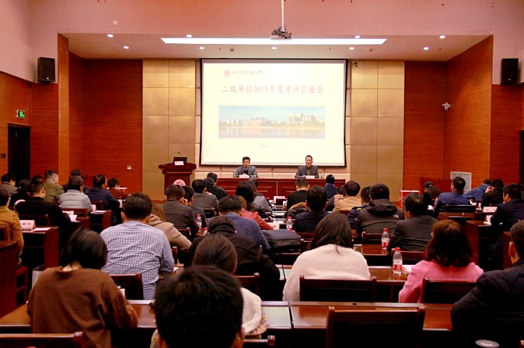 为更好地总结回顾2019年工作,展示工作成果,推进目标管理量化考核落地落实。按照学院考核工作领导小组办公室统一安排,1月7日晚,学院在图书馆828会议中心召开二级单位2019年度考评汇报会。学院全体党政班子成员出席考评汇报会,主管及以上干部、高职称高学历教师代表、民主党派代表、普通教职工代表参加考评汇报会。考评汇报会由院长沈红卫主持。