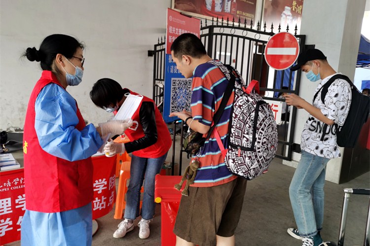 “同学你好,你是我们元培学院的学生吗?请先过来测量体温!”“同学,请出示一下你的健康码。”“请大家稍等,我们会为你们统一安排返校接送专车!”每天早上七点,党员突击队吴金辉、吕跃军、李峰、宣璐莎、计丹丹、王靖雯、张益勋、谢皆欢、姚冀越、顾观东、杜磊、朱恺、孟世佳等13名党员教师,准备就绪,早已等候在绍兴高铁北站接站点,开启“复学大战”。这几天,他们每天要完成百名学生的体温检测、微信扫码、口罩更换工作,对于个别灰码的学生,还要按照流程严格审核、妥善处理。12个小时工作下来,长时间的站立导致腿部肌肉酸胀,连续不断的耐心解释也早已是口干舌燥,但大家不约而同地说:“尽心尽责完成工作是党员的使命,让每一位元培人回家的路更加安全、温暖、平安顺利返校复学,就是对我们工作最好的回报。”