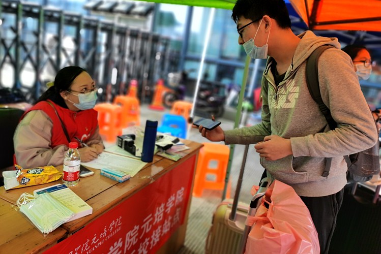 身处校园十几公里外客运中心的况细林、严立飞、潘思慧、沈立、王丽萍、徐丽、蔡佳丽等党员教师们每天也在重复着同样的工作。他们每天天色未亮就要到达接站点,摆放好帐篷和测温用具,贴上绍兴文理学院元培学院的标志,就开始了一天的等待和忙碌。客运中心学生流量虽然没有高铁北站多,但学·生比较分散,聚集起来很不容易,四天下来,他们共接待了两百余名返校学生。志愿者中不乏年近花甲仍然冲锋在第一线的教师,接站点负责人况细林介绍,每次有车进站,这些志愿者们都会兴奋焦急地望向大门口下车的人群,快速锁定学生,疾步至出口处逐一询问,生怕错过任何一个元培返校学生。