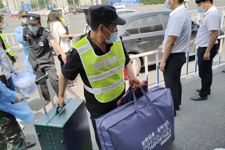 一线防控任务十分繁重,学生返校的安全也刻不容缓。这不,一位提前返校的学生为好几个大大小小行李箱犯了难,盛金平看到了立马主动帮忙,一口气把行李搬上了六楼。“返校日看到这么多学生回来,我还挺激动的,”他笑了笑,“今年特殊,家长不能进校,我们对学生肯定是能帮就帮的,他们就和我自己的孩子一样。”不只守标准,更是用心、用真情为学生和校园服务,保安们的辛勤工作大家都看在眼里,纷纷为其点赞,面对称赞,盛金平不好意思地笑了笑说:“这没什么的,我们只是做好自己该完成的工作而已。元培校园在这4个月的时间里安然无恙,我们也是打心眼里骄傲啊!”晚上7点,整座城市已经被黑夜笼罩,盛金平才结束工作,摘下那顶黑色的保安帽,明明天气并不很热,但额发早已被汗水浸湿。