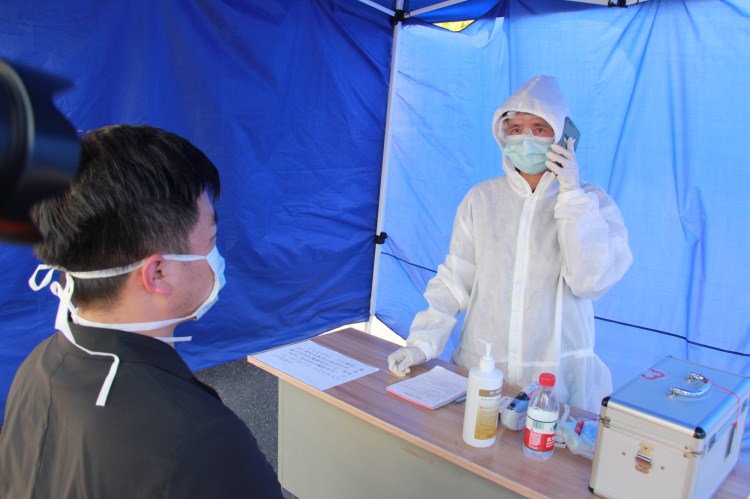 在学院西大门测温点,王兰芳头戴口罩与面罩,身着防护服,手持体温枪,在近三十度的气温下,严把着“入校关”。“西门作为学院疫情防控期间的唯一进出口,人流量较大,所以做到精准到人的体温筛查,是一项挑战,也是我们医务室各位同事共同努力和协同攻关的难题。”王兰芳说。开学返校期间,受炎热天气影响,体温偏高需要复查的学生较多,王兰芳和同事便带领他们到专属区域休息,每隔十分钟进行多次测量。一天8个小时,虽然面部被口罩勒出条条印记,汗水如蒸桑拿般浸透了层层衣裳,但王兰芳等医务人员毫无怨言,仍每天手持着体温枪坚持轮班站岗。