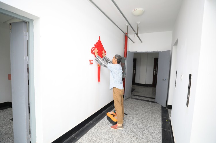 火红喜庆的中国结,挨家挨户门前挂起,在学院留学生外教楼(以下简称“留外楼”),工作人员正忙得不亦乐乎。6月26-27日,学院举行留外楼开放日活动。本次安排对外开放参观的楼宇是即将投入启用的A、B、D三幢楼。活动当天,不少有租用意向的教职工以及部分家属切身感受、实地踏看留外楼实际情况。大家饶有兴致地参观了房屋中每个区域,仔细查看墙面、灯饰、瓷砖、卫浴、厨具、水电线路等各个细节情况。