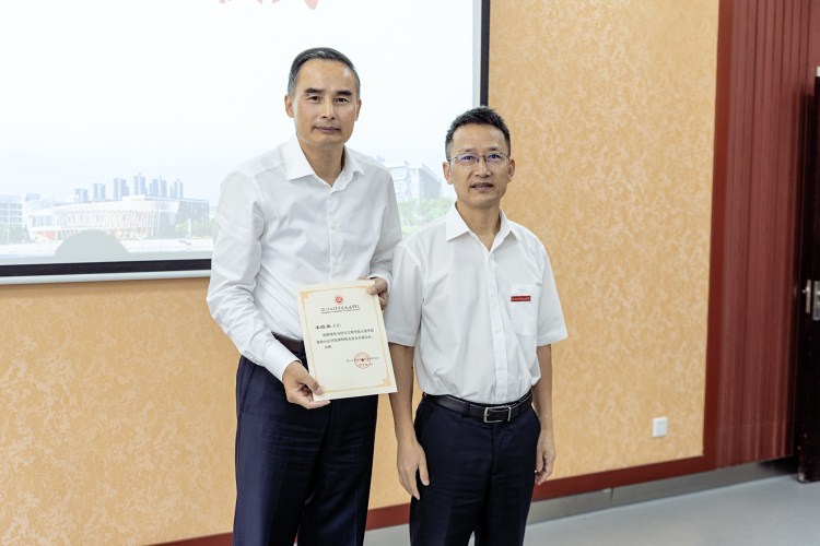 “梁柏台法学院”党总支书记陈跃男为协会会长徐成科颁发聘书