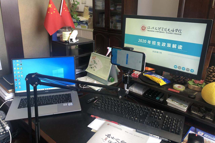 “我们进行直播的平台有很多,一场直播大概是30分钟至120分钟不等,一场播完就要换平台播下一场。”招生办负责人严兴尧回忆道。面对2020年招生工作的新变化,学院招生工作思路做出了重大调整,网络在线直播成为了今年元培招生宣讲的重要形式,严兴尧积极应对,兼顾电话答疑与线上咨询的同时,第一次当起了主播。