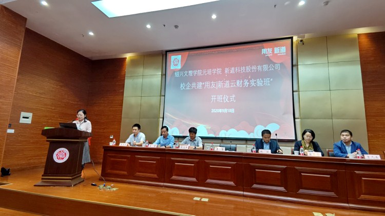 近日,学院与新道科技股份有限公司联合共建的“用友|新道云财务实验班”第二期开班仪式在图书馆828会议中心举行。学院副院长李黎与新道科技股份有限公司浙江区总经理林斌先生出席仪式。经济管理分院院长杨文兵、党总支负责人陈晖、新道科技股份有限公司浙江区市场总监陆琴芳、校企合作部经理曾凡森、分院教师代表以及50名“用友|新道云财务实验班”学员参加仪式。