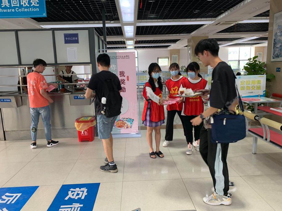 走至群贤楼、兴越楼食堂,入口、餐桌、立柱、墙面的醒目位置都摆放、张贴着“光盘行动”宣传画,大厅电视上播放着节约粮食的宣传片,电子屏滚动着“厉行节约,反对浪费”的宣传标语……食堂采取各种各样“接地气”措施,降低食堂剩餐率,向餐桌浪费说“不”。同时,通过学院官网、微信公众号等多途径发布节约倡议书,引导广大师生自觉加入“光盘族”的行列。“今天你‘光盘’了吗,‘光盘’就有小礼物!”9月28日-29日,食堂开展了“你光盘 我奖励”活动,在校园内掀起了一股“光盘热”。记者了解到,在食堂就餐并光盘的师生可获得“光盘行动”奖品券,凭券可至校内超市免费兑换小礼品。法学1904班吴佳宇说:“光盘之后还能领一份小奖品,让‘光盘’更有动力,感觉特别赞!”“食堂里‘光盘行动’四个字十分醒目,时刻提醒大家,绝不能浪费粮食,让‘光盘行动’不单单只是一句口号。”正在就餐的多位教师说。节约粮食,不仅是美德,也是责任,广大师生也在潜移默化下强化节约意识,养成勤俭节约、爱粮惜粮的行为习惯。