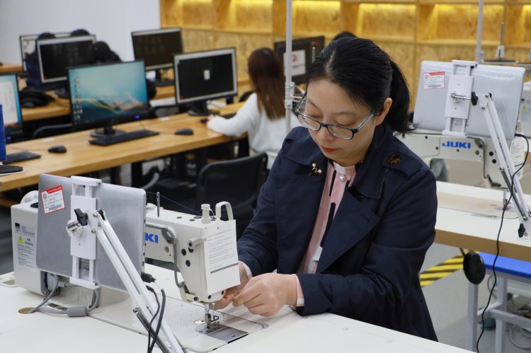 “服装结构设计的基础是严谨的结构和计算,然后才是美的传达。”比起单纯地传授知识,培养学生的空间想象能力及对事物的感知能力更是她的教学目标。“从图纸、计算、裁剪、成衣,如果每一步过程中都能考虑到它后续合理性,就会‘少走很多弯路’”。她鼓励大家在设计上发挥想象,添加别出心裁的小设计。“我们结构里有个圆形裙,长度在膝盖下面。有同学问我能不能把裙子剪短到膝盖上面呢?结果做出来也很好看,我觉得这样很好。”她认为,多加一些小练习,让学生勤于动手,把自己打的板式做成样衣,能提高学习的兴趣,让他们从中感受到成衣的喜悦,又能把当堂学习的样板应用进去,才是“材能”兼备。