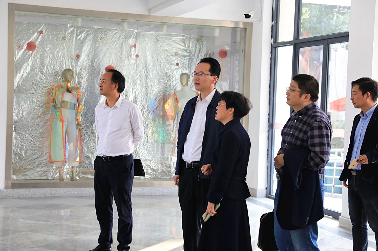 检查组一行走访纺织服装与艺术设计分院服装智能制造实验室等场所