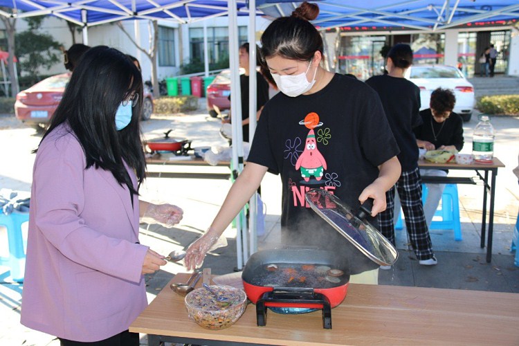 本次健康文化节项目丰富多彩,现场共有5个区域组成,其中包括药膳节决赛、急救比赛决赛、环保袋涂鸦大赛现场投票决赛、健康游园区以及健康展示区。文化节还有幸邀请到了石富娟、阮学群两位知名中医为我学院师生进行坐诊,现场人声鼎沸、摩肩接踵。其中药膳决赛吸引了全院师生的积极关注,全院7组参赛队伍同台竞技,选手们精心挑选、认真搭配食材,巧用当归、山药、枸杞等中药药材与辅食相结合,制作健康养生菜品,展示传统厨艺技能。伴随着一道道美味佳肴的隆重登场,赞美之声不绝于耳。现场通过解说,让评委与观众在大饱口福的同时,也领悟到了药膳的独特魅力。