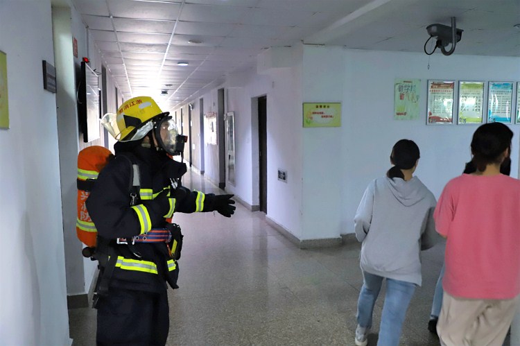 11月18日下午,学院保卫处在南区学生公寓2-3幢组织开展学生公寓应急疏散演练。越城区消防救援大队、学院学工部和基建后勤处等职能部门有关负责人,相关分院安全工作负责人、辅导员、物业安保人员、公寓管理员及学生代表等参加演练。