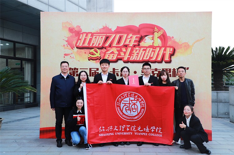 2019年11月23日,第二届“卡尔·马克思”杯浙江省大学生理论知识竞赛决赛拉开帷幕,由我院土木1701班徐振宇,国贸1701班朱佳莉,园林1702班徐燕娜、潘华键,物流1701班侯晓幼,翻译1702班郑璐组成的“星星之火”团队在与省内12所院校同台竞技中脱颖而出。赛事分为个人必答、时政述评、小组抢答、小组风险题四个环节,个人必答结束后,各团队分值极为接近,与“星星之火”分值相同的就有9支队伍,在时政述评,潘华键的旁征博引与有理有据的论述,让诸多观众为之动容,随后的小组抢答环节中,徐燕娜每按动一次手中的按钮,徐振宇、朱佳莉等人便毫不怯场、镇定自若的起身作答,每每都令场下的替补队员和老师们心跳加速。重重突围之后,“星星之火”团队的排名逐渐赶超靠前。前三环节的不错表现令队员们信心大增,队长徐振宇顶住压力同团队成员默契配合,凭借开阔的思路和全面的作答毅然拿下30分赶超对手,实现逆风翻盘,以286分的总成绩位列参赛队伍首位,获得省赛一等奖第一名,不负众望,载誉而归。