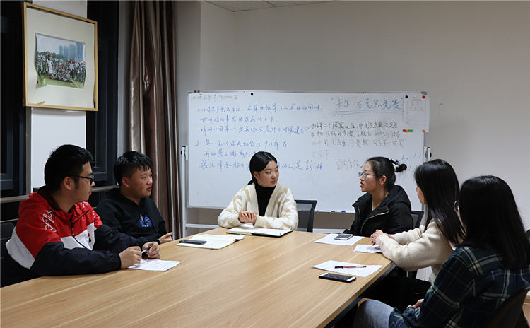 “当时这儿还放了把躺椅,是齐老师担心我们累了可以好好休息,便主动将自己午休的椅子给了我们,我的灵感全靠这把椅子啦。”潘华键采访时指向办公室的窗边一角,笑着说,“精神压力大的时候就躺在那摇一摇,一有灵感便会迅速起身奋笔疾书。”潘华键负责比赛中的时政述评部分,述评主题的确定与素材的准备令他掏空了心思,绞尽了脑汁。备赛阶段,国庆七十周年阅兵刚结束不久,指导老师和队员们便陪着他一遍又一遍地回看阅兵式,寻找灵感。一周后的赛场上,一段抗战老兵庄严敬礼的故事赢得了全场观众的掌声。六位优秀的学子聚到一起,谈笑间满是深厚的“革命友情”。比赛带给他们的不止胜利,亦有一份深厚的情谊。他们的身上,更流淌着“星星之火”怀揣初心、发挥个性、相互学习、真诚协作的团队之道。